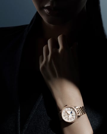 On the Rendez-Vous Night & Day, diamonds have been added to the inner dial to enhance its brilliance. The hour markers, also set with diamonds, have been accentuated for a more captivating, eye-catching effect.