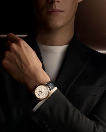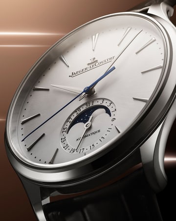 Slim and refined, the Master Ultra Thin Moon in steel showcases pure lines shaped by a thin bezel, elongated lugs and perfectly balanced proportions. Its sunray-brushed dial highlights the moon-phase with discreet harmony, while tapered indexes and Dauphine hands enhance clarity and elegance. With a subtle interplay of polished finishes, the design offers a timeless, understated presence that sits naturally on the wrist.