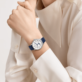 When introduced in 2012, the Rendez-Vous was hailed as a groundbreaking timepiece, marrying outer style with inner technical sophistication. Adorning a dial rich in refined details – textured guilloché, cabochon hour markers, a diamond-ring, floral numerals and hands – this timepiece is also brought to life by a delicate moon-phase complication. The combination of jewellery-like finishes and watchmaking complication reflects a strong sense of elegance and mechanical beauty.