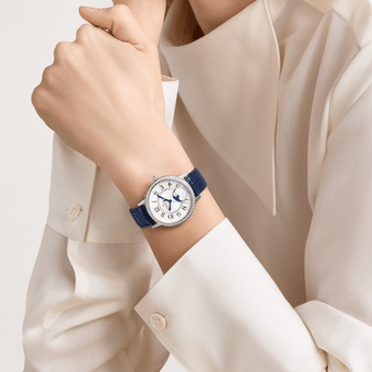 Entirely designed, produced, decorated and assembled within the Manufacture, the automatic-winding Calibre 925 houses a moon-phase complication with a cycle of just over 29 days. It also offers a power reserve of 70 hours.