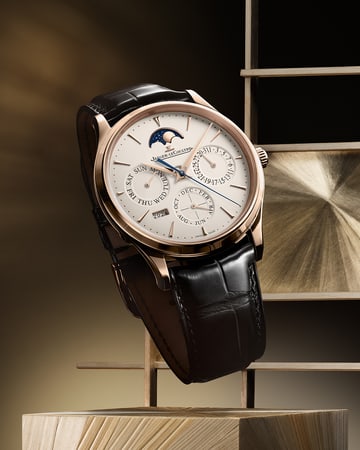 With its confident elegance, the Master Ultra Thin Perpetual Calendar in 18K (750/1000) pink gold combines a refined perpetual calendar design with a high-performance calibre and a 70-hour power reserve. Its sleek, slim profile makes it the perfect, sophisticated dress watch that leaves a lasting impression on those who appreciate true artistry.
