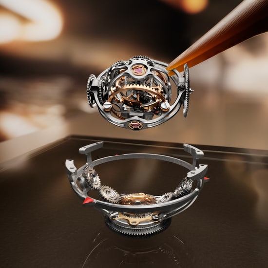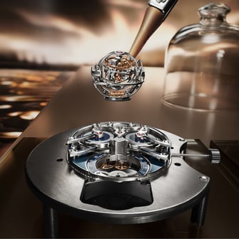 The Master Hybris Inventiva Calibre 178 Gyrotourbillon À Stratosphère, for which several patents have been filled, takes the multi-axis tourbillon construction even further, to become a tourbillon within another tourbillon within yet another tourbillon. The kinematics of this triple-axis tourbillon achieves 98 per cent of all possible positions to compensate for the negative effects of gravity on the precision of the watch.